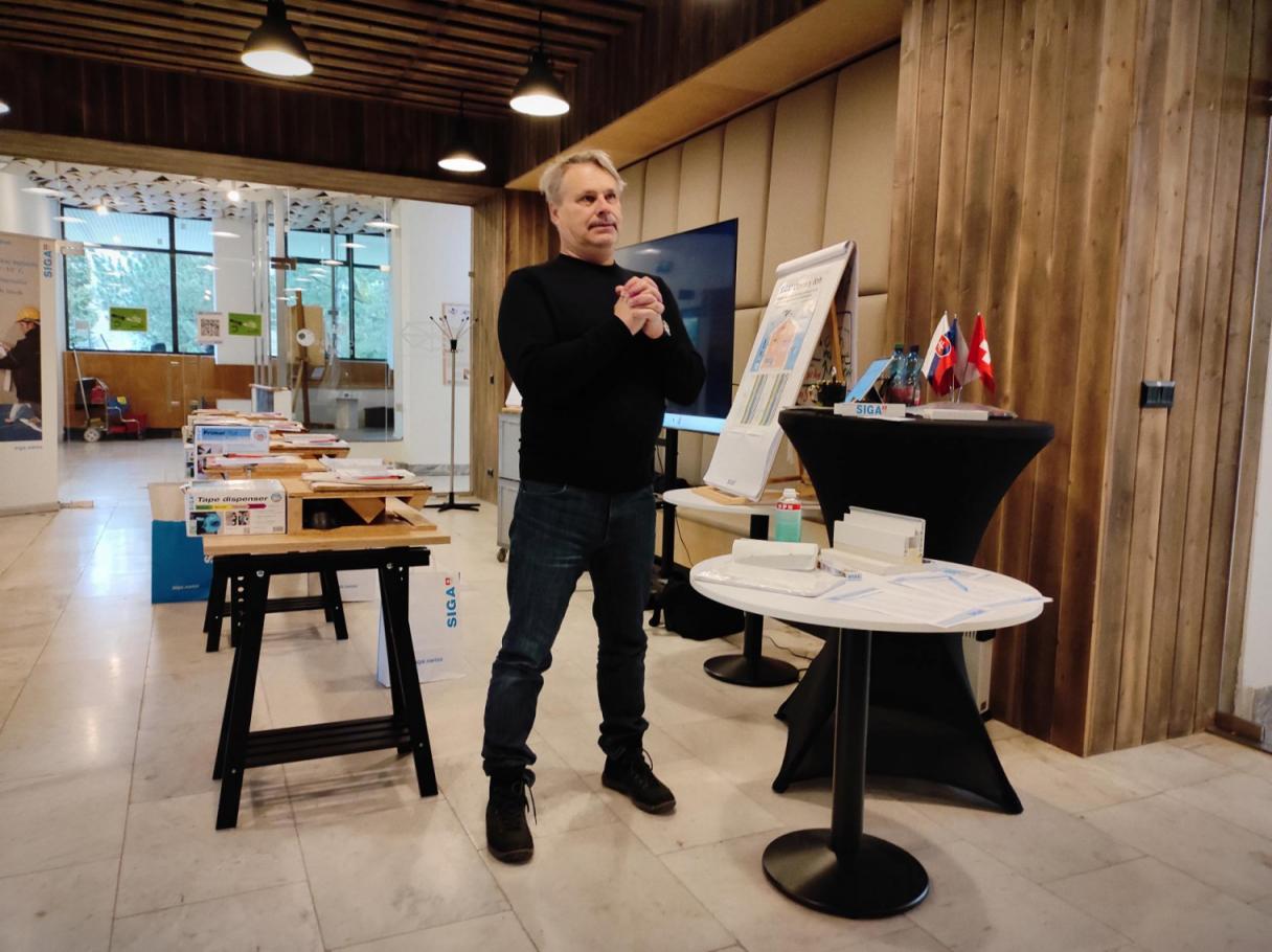 Praktický workshop viedol Karol Plaštiak, odborník zo spoločnosti SIGA, ktorá patrí medzi popredných lídrov v oblasti systémových riešení vzduchotesnosti a vetrotesnosti obalových konštrukcií.